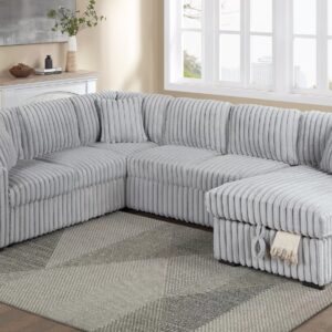 Fabric U-Shaped Pull Out Sectional Sofa w/ Storage Chaise + Pillows, Beige or Gray Color$1,399.00Original price was: $1,399.00.$1,199.00Current price is: $1,199.00.