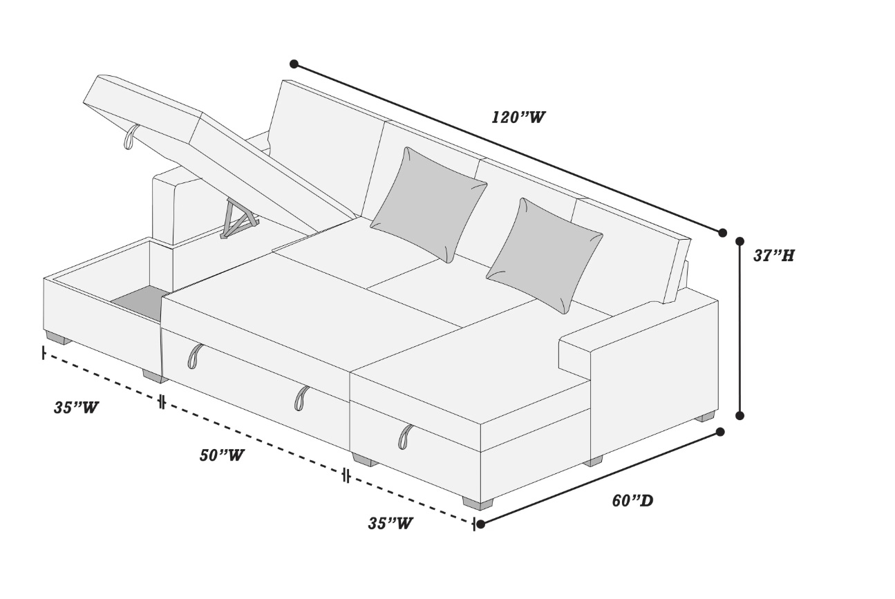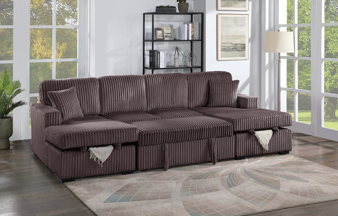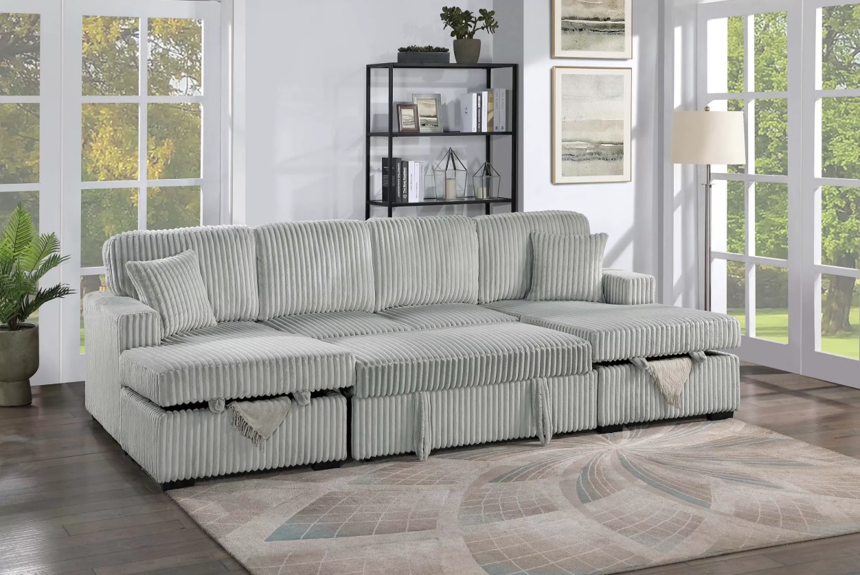 3pc includes:  LAF & RAF Chaise, Armless sofa w/ Pull-out Bed