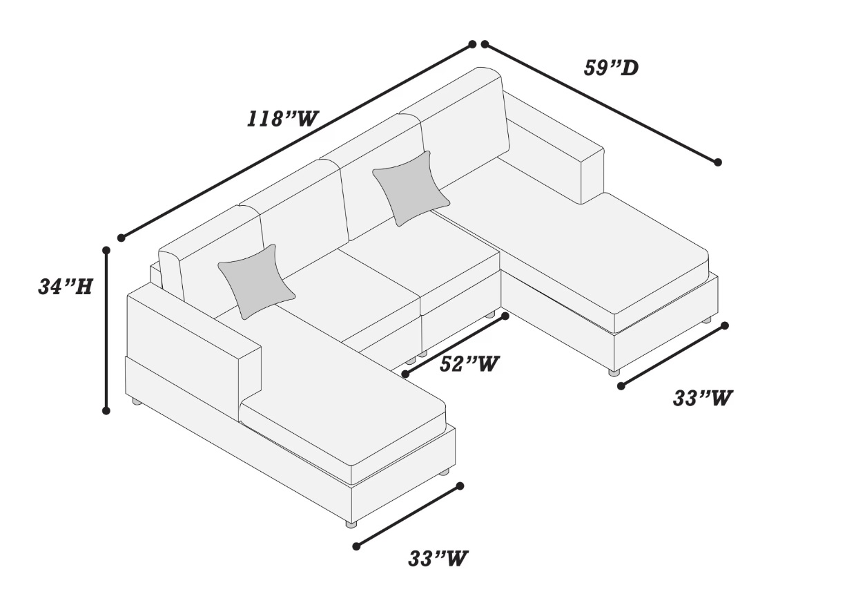 8333-PX Sectional 118″ x 33″ D x 59″ x 34″H