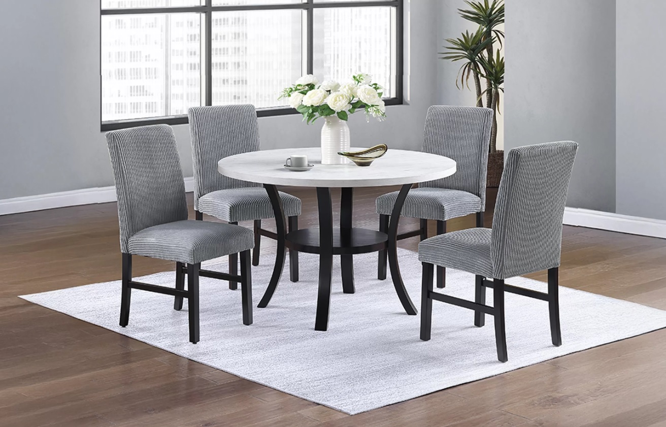 Transform your dining space with this elegant dining chair, the sleek design is enhanced by the slightly curved back legs, adding a touch of sophistication, while the side middle bars provide extra reinforcement for sturdiness. The chair’s seat and back are upholstered in soft, textured corduroy, providing a plush and inviting feel for everyday comfort. Pair this chair with its matching table-sold seperate to create a cohesive and stylish dining set that seamlessly blends into both modern and contemporary interiors.