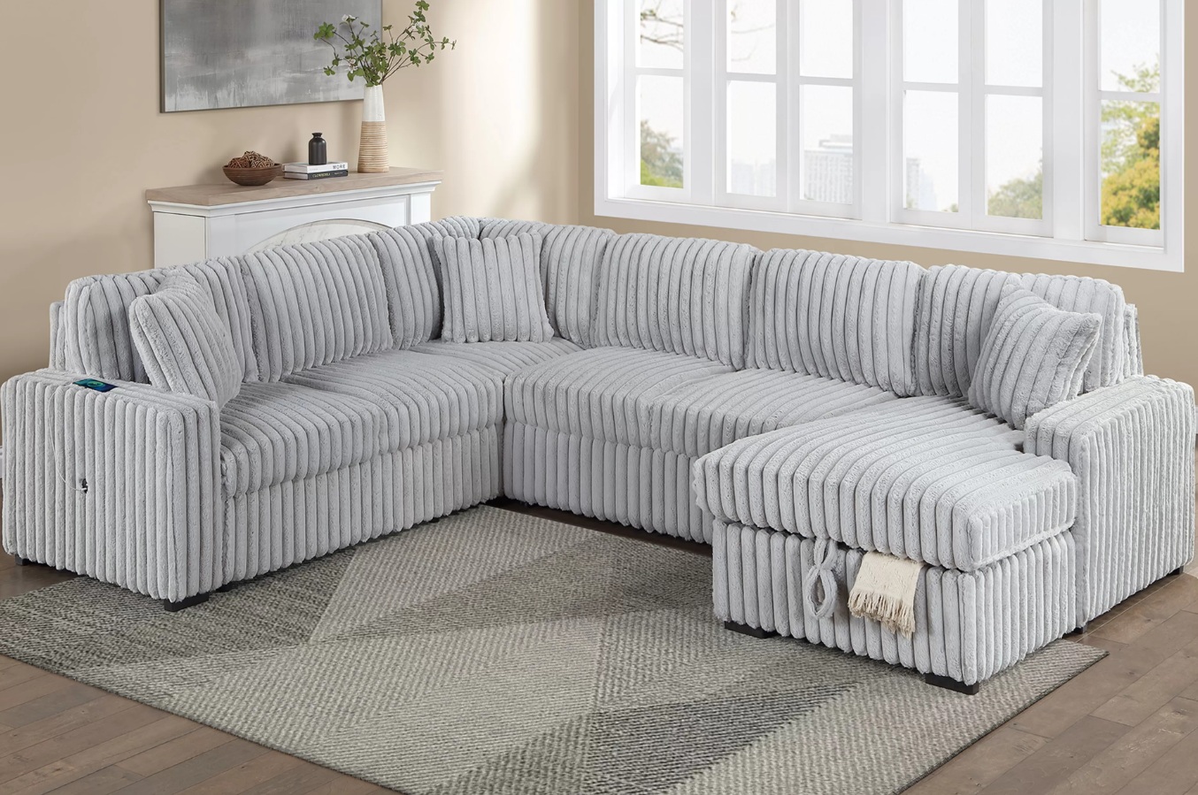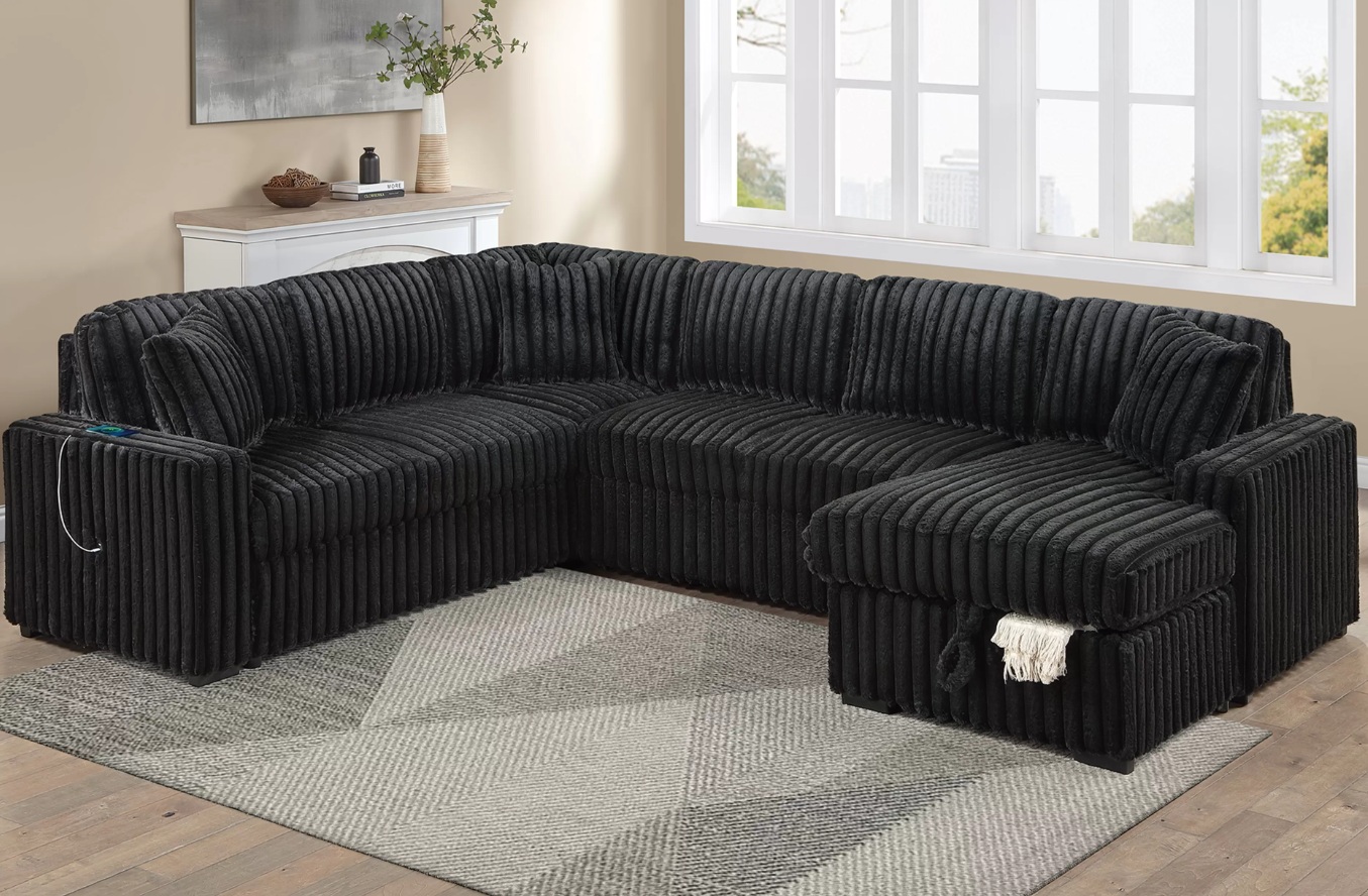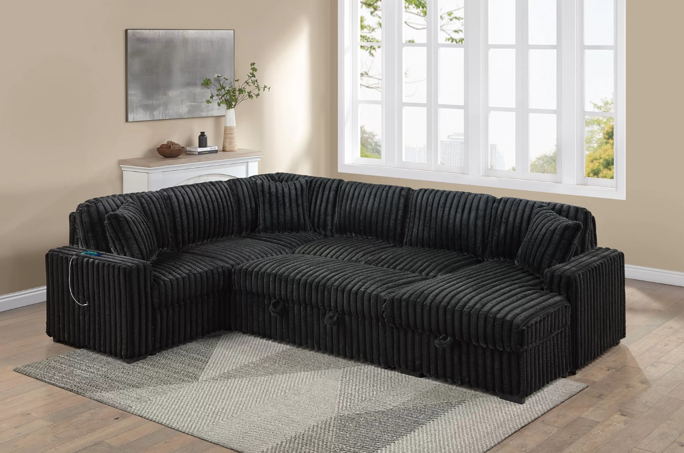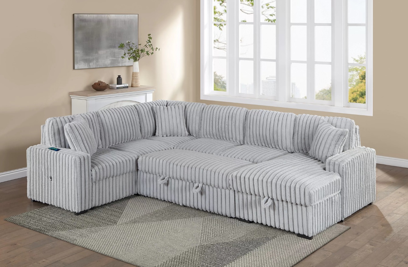 Sectional Set, Sleeper Sofa W/ Pull-Out Bed + Chaise Storage + USB Port