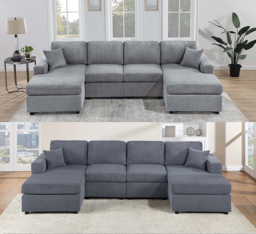 - Indulge in ultimate comfort with this sectional, featuring two chaise lounges at each end, ideal for relaxing after a long day or enjoying cozy movie nights with family and friends.